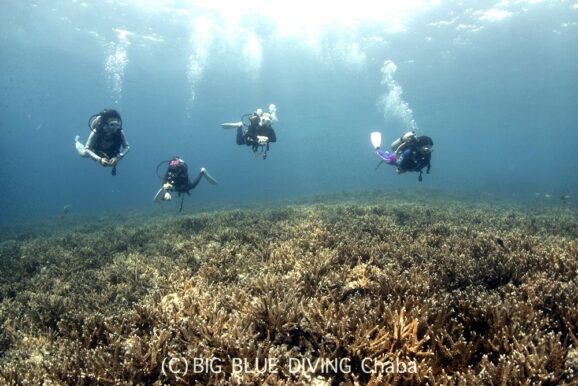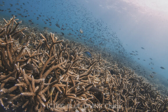 浅場のハードコーラルが元気なエリアで遊びながらの安全停止・・・