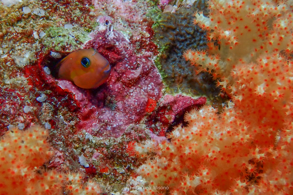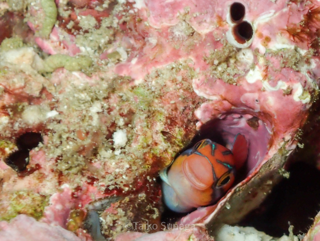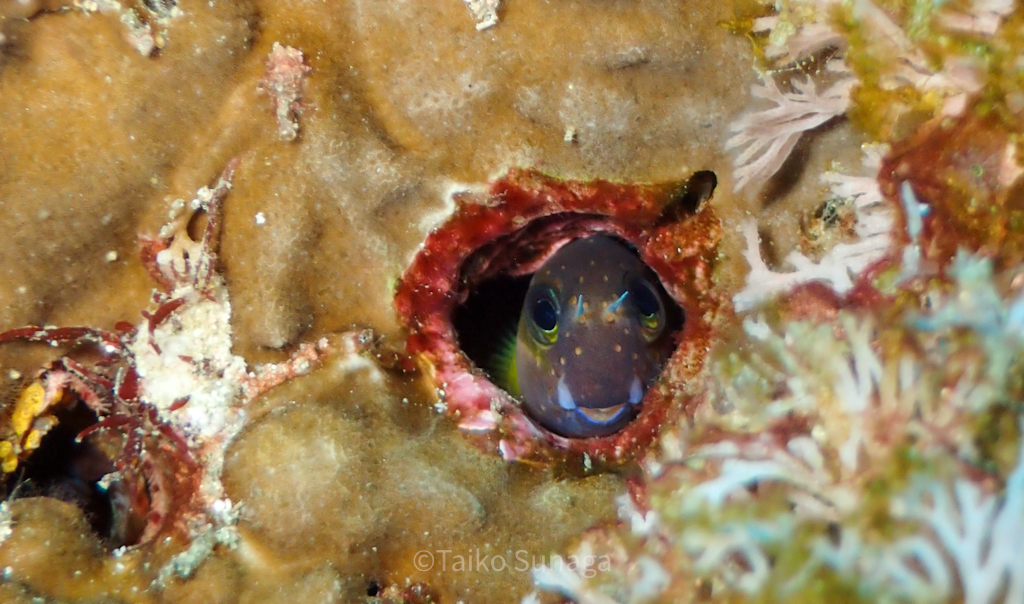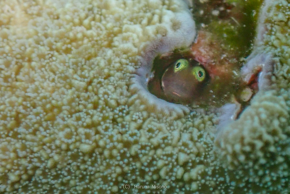 イバラカンザシに何かが絡まないかな〜!?って探していたらミナミギンポが穴から顔を出していました