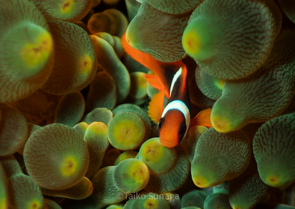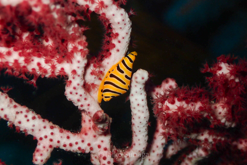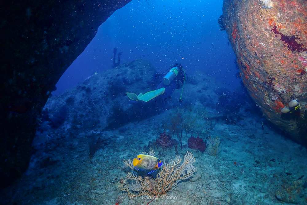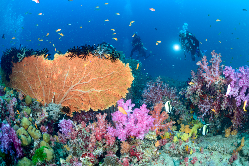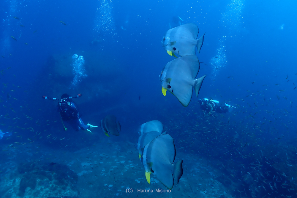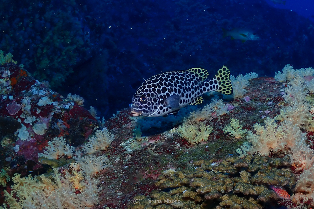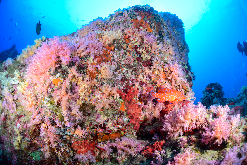 黄色いソフトコーラルがモリモリなポイントなので、バラクーダの下でこんなのも撮っていただきました!