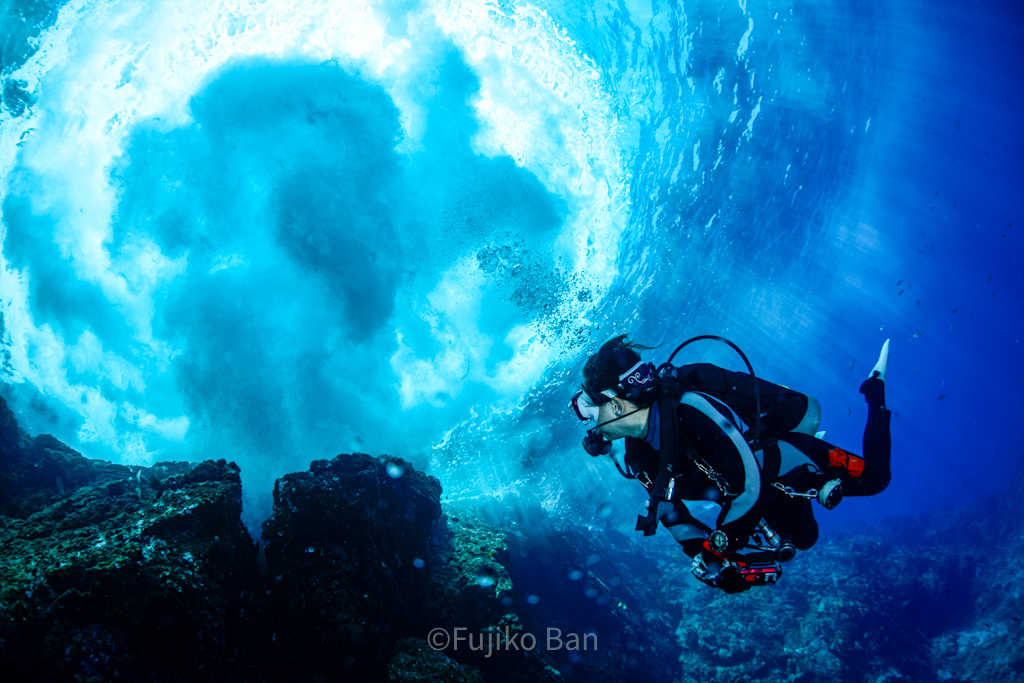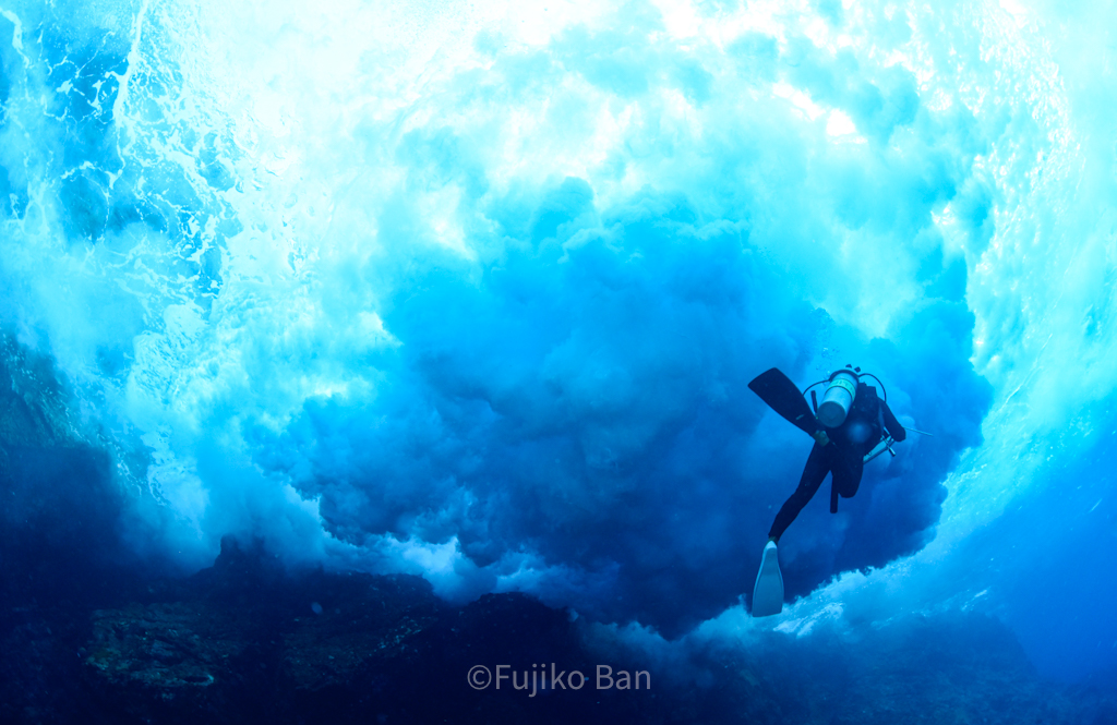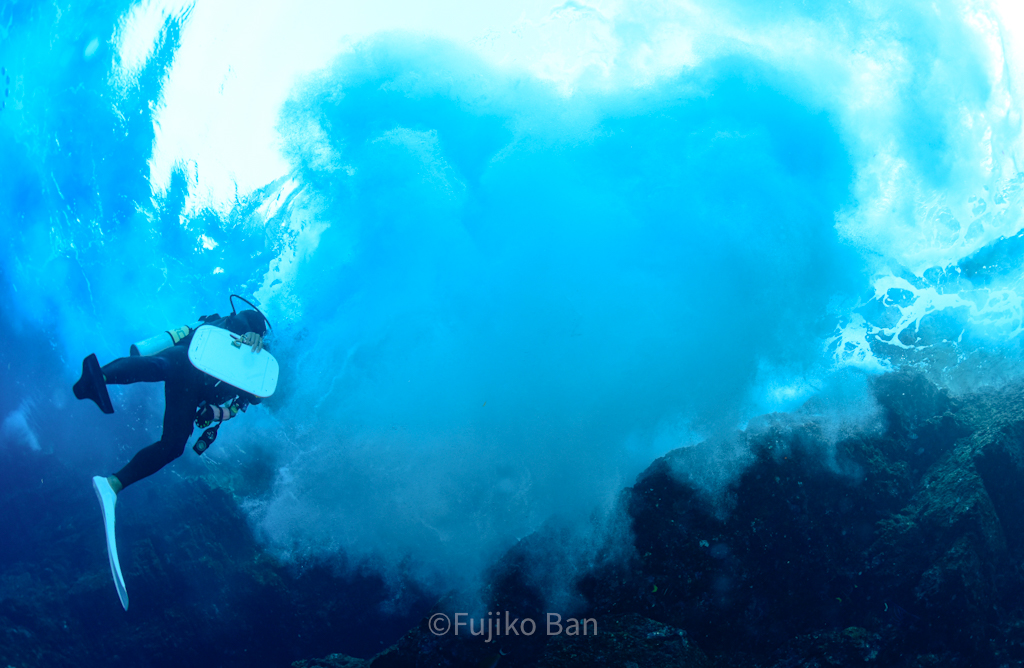 この日もうねりが強く、「滝壺」は健在!