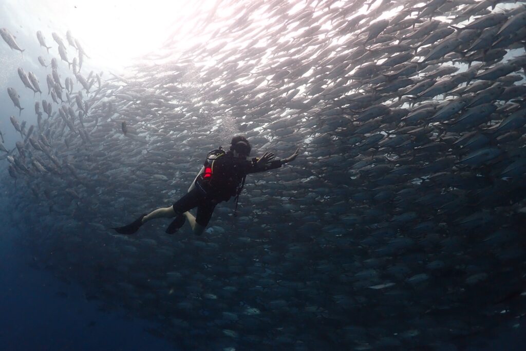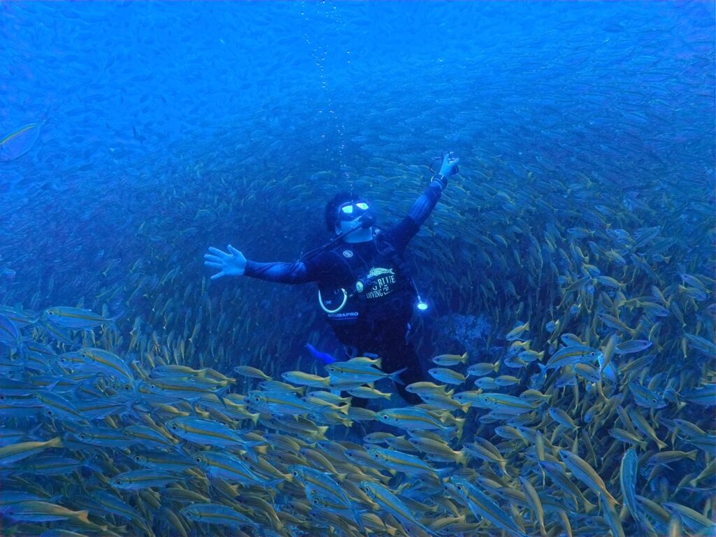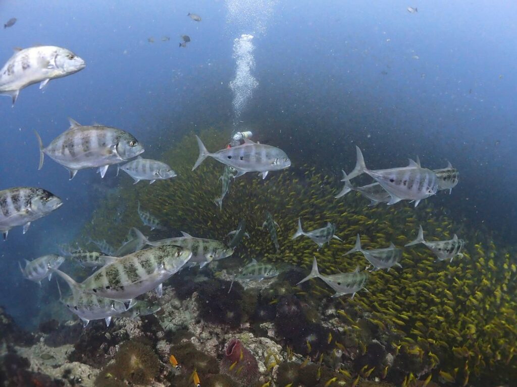 バラクーダたちもいましたが深いところに多くてなかなか近づけず