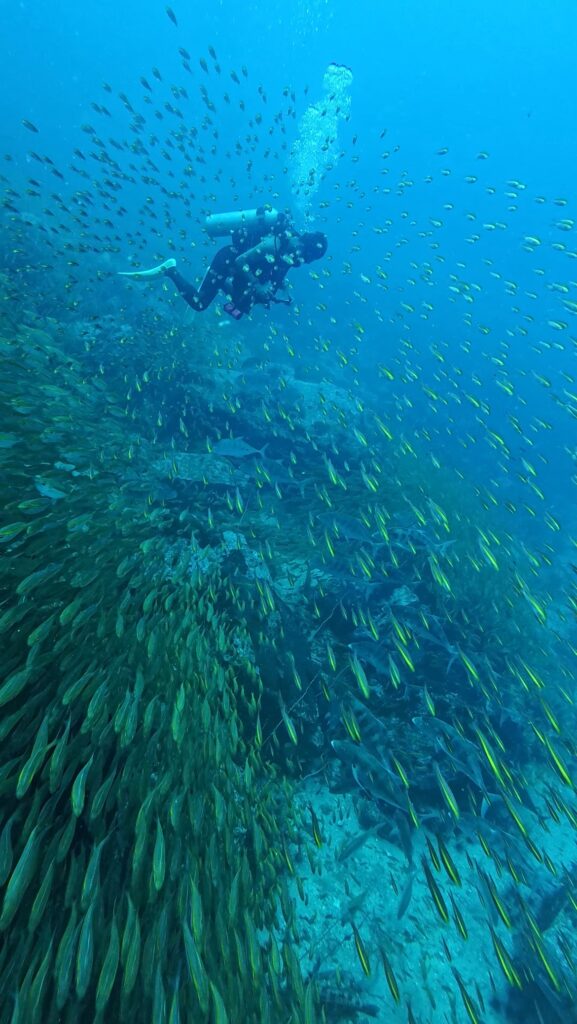 最後に出てきたチョウチョウコショウダイの幼魚、おしりフリフリかわいかった
