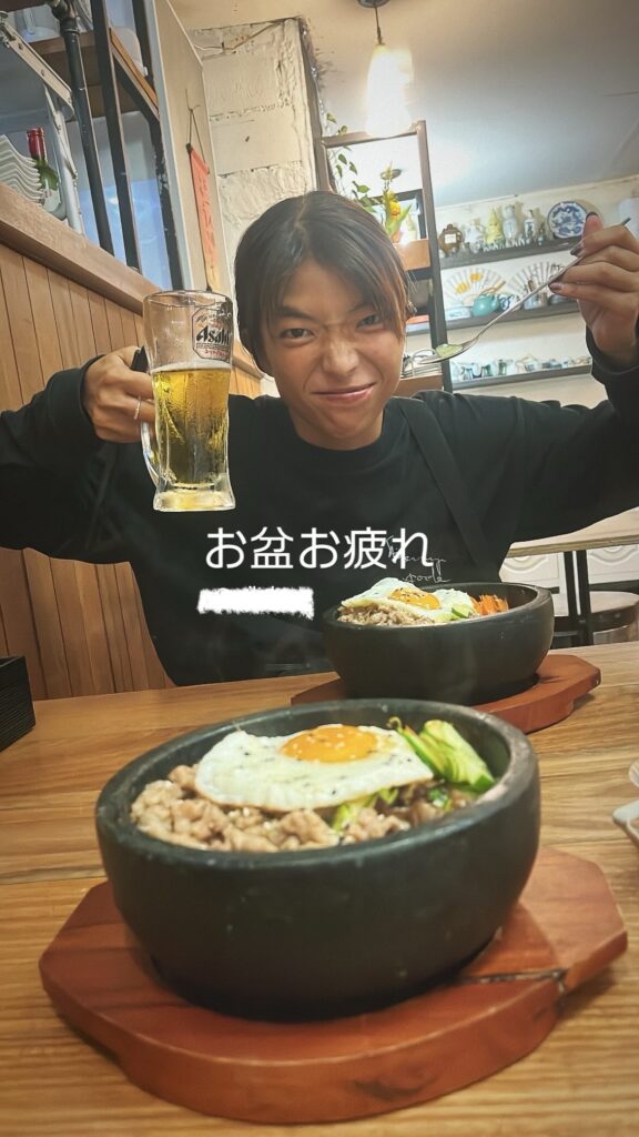 夜ご飯は日本食屋でアサヒビール&ビビンバ