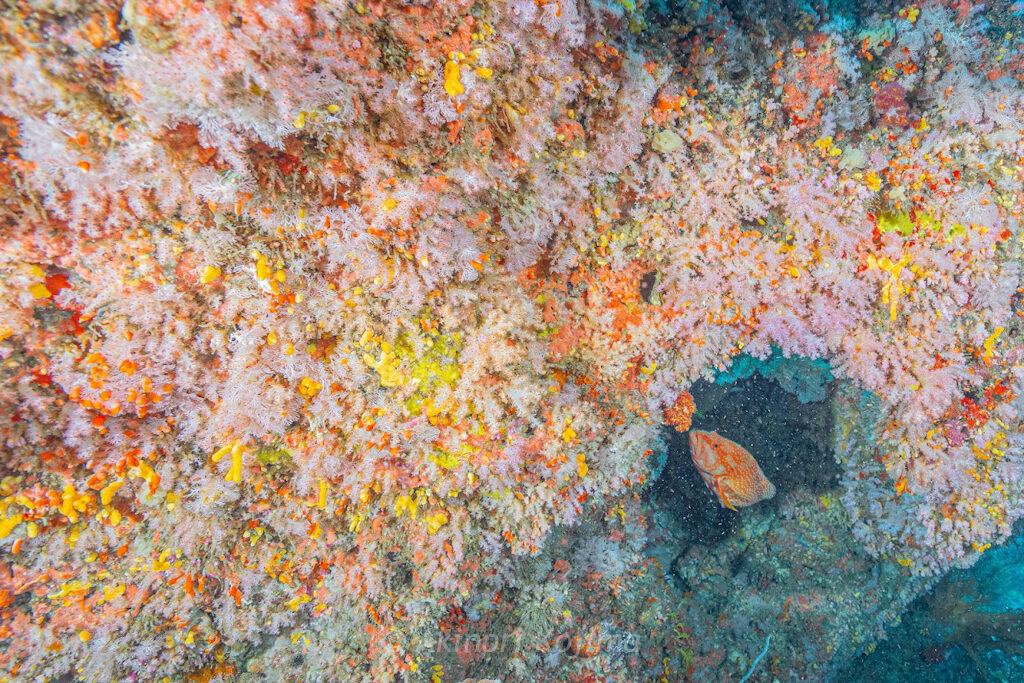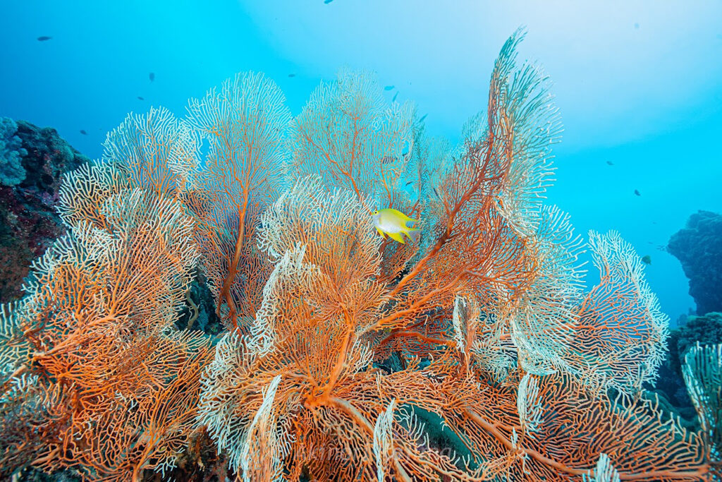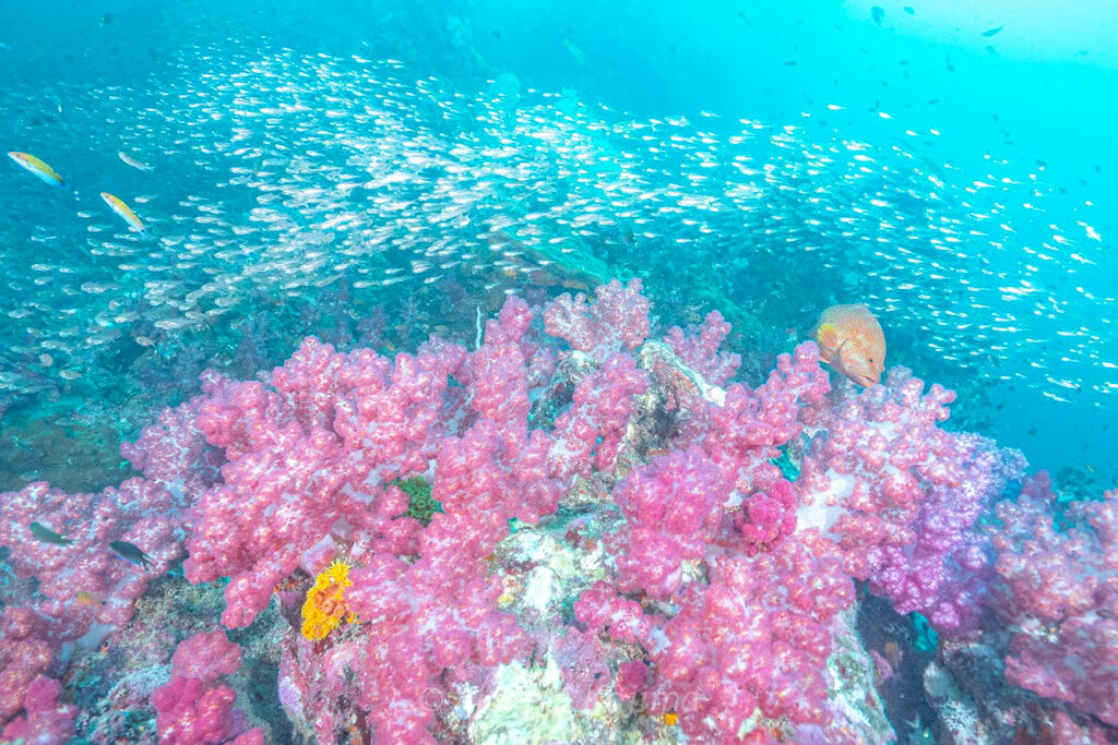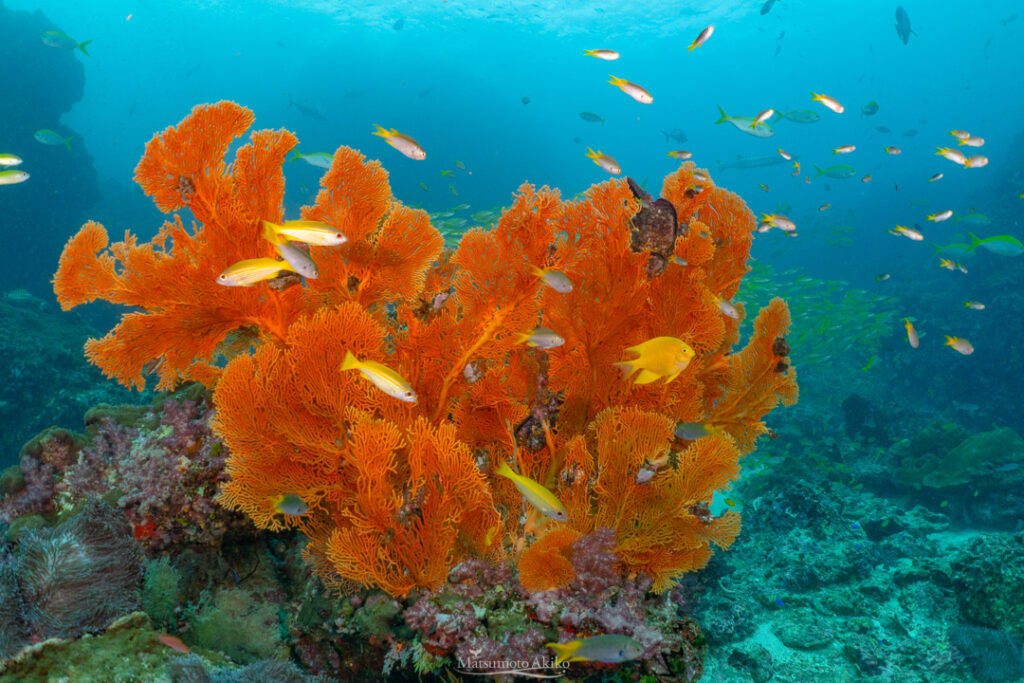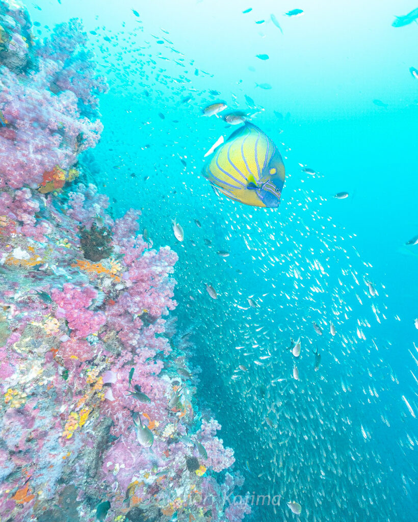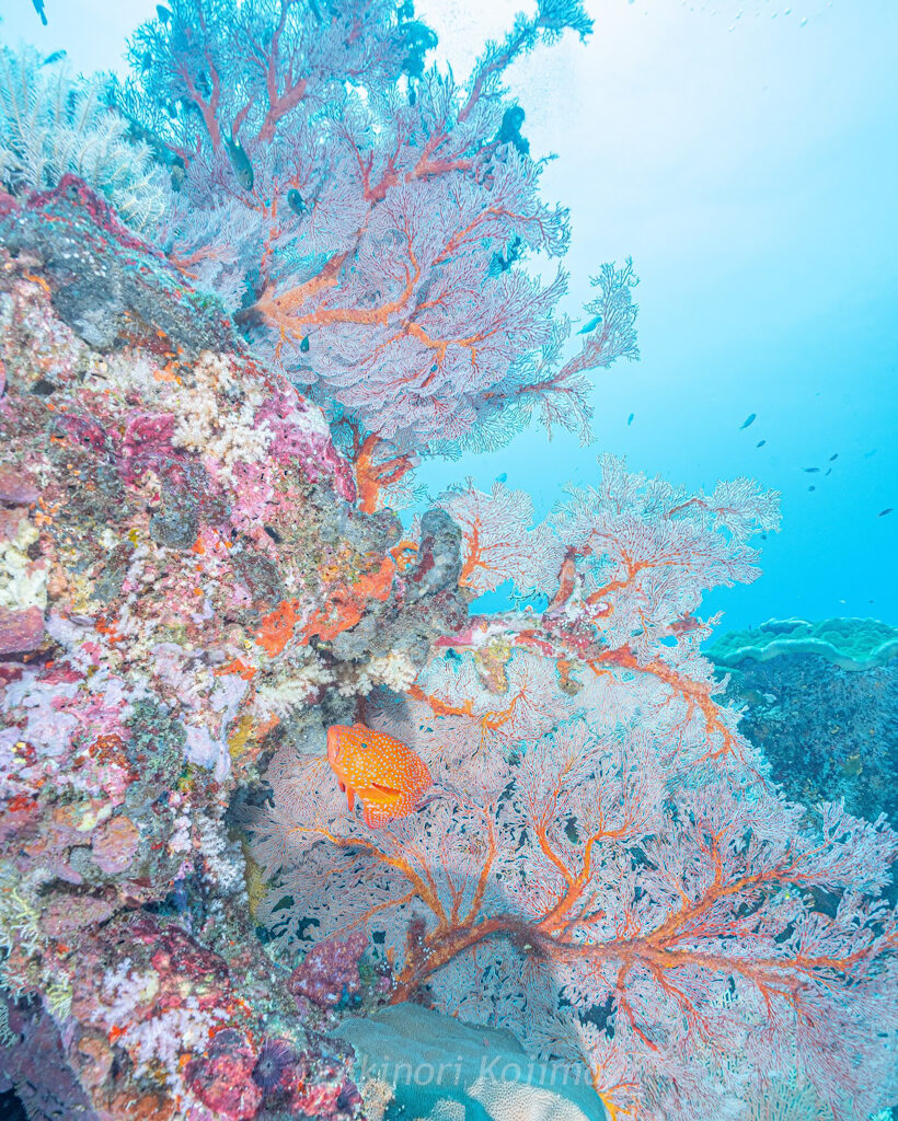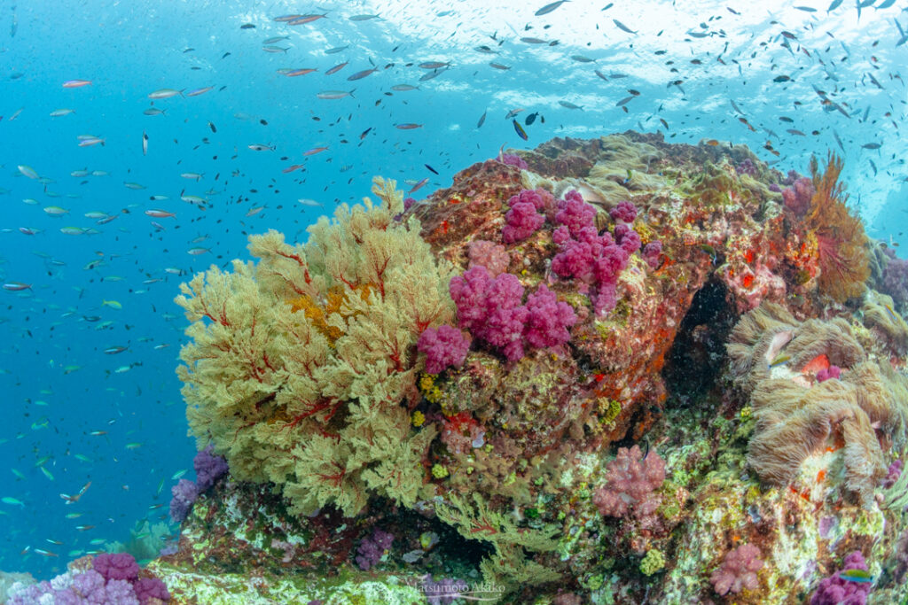 この日はいい感じで黄色とピンクのソフトコーラルが咲き誇っている状態でした〜