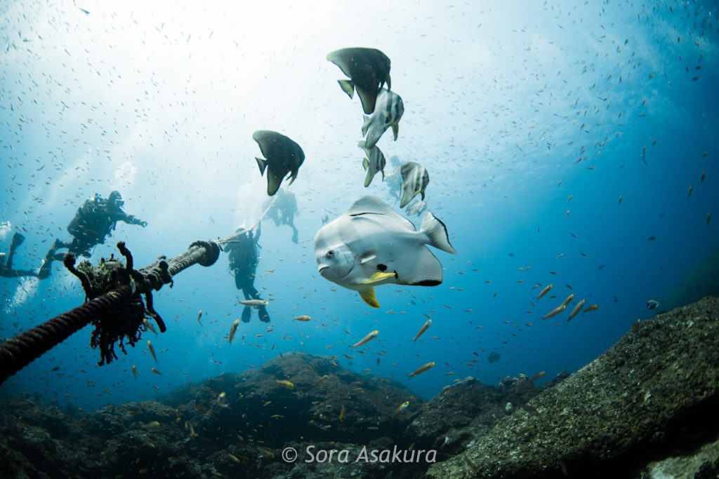 まずは潜降ロープの横にツバメウオがお出迎え。