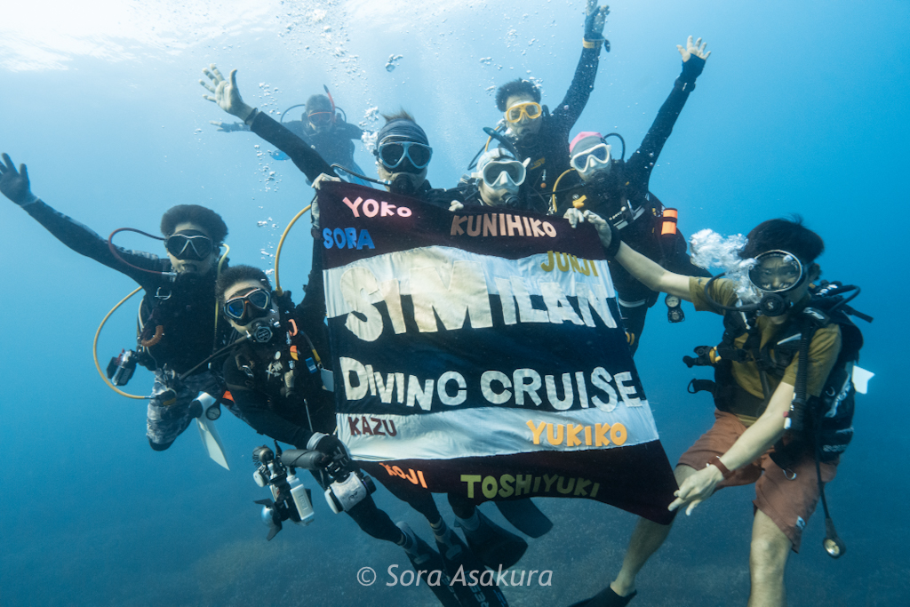 穏やかなポイントでSEASIRさんチームの水中集合写真を撮りました。