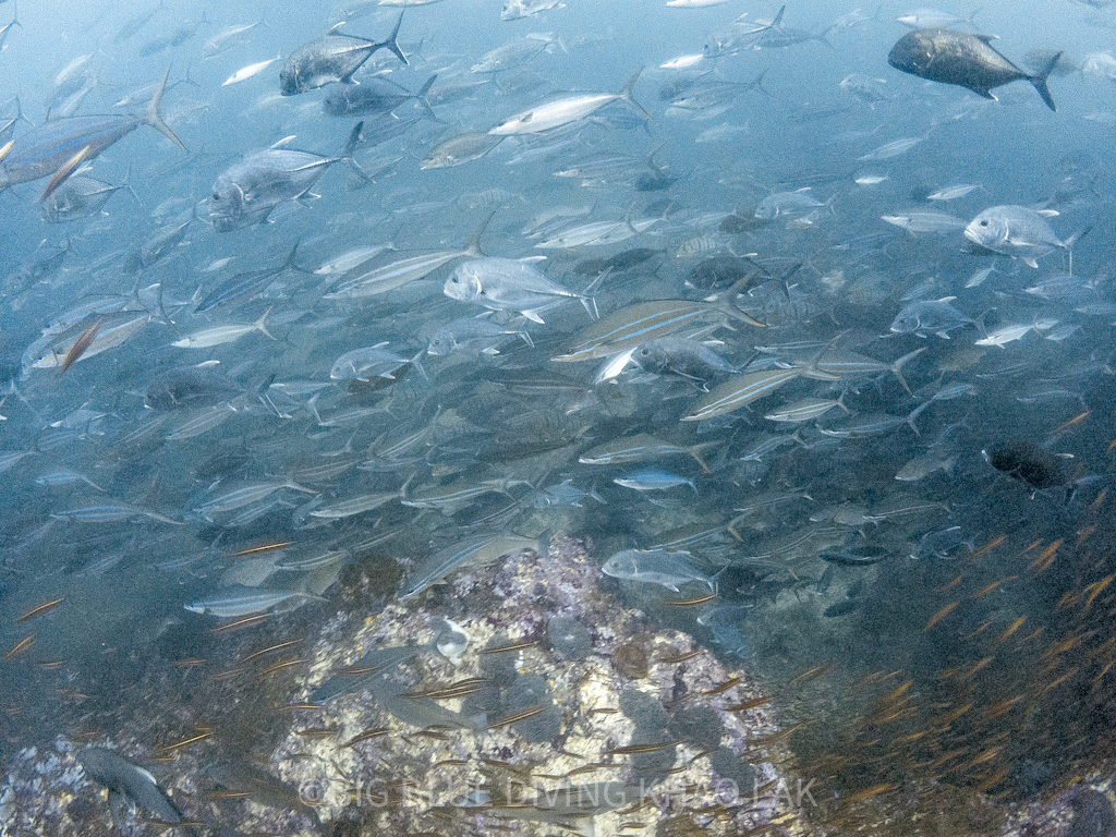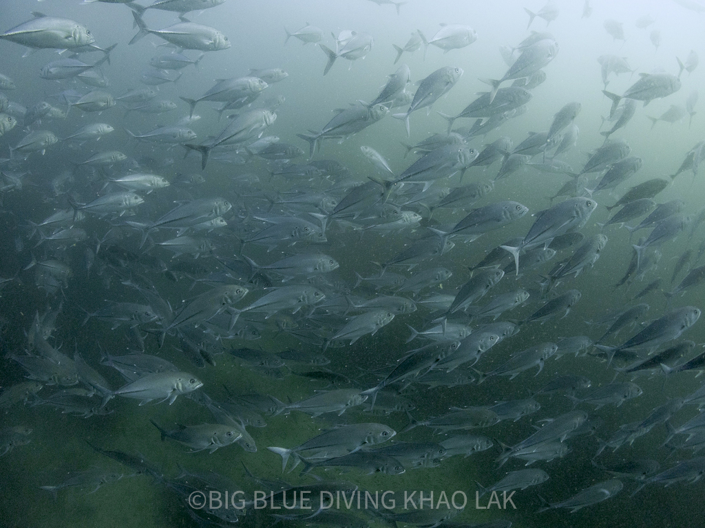 流れのあったポイントではロウニンアジやカスミアジがハンティングをしていて、ツバメウオも群れていました。