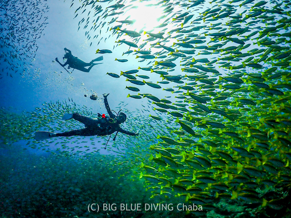 テルメアジの群れに囲まれる11歳のJr.オープンウォーターダイバー
