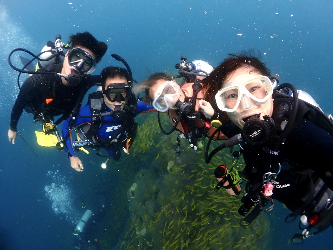 キンセンフエダイとテルメアジの群れの中を泳ぎながら、その攻防を間近で見られる贅沢な迫力満点な時間でした。
