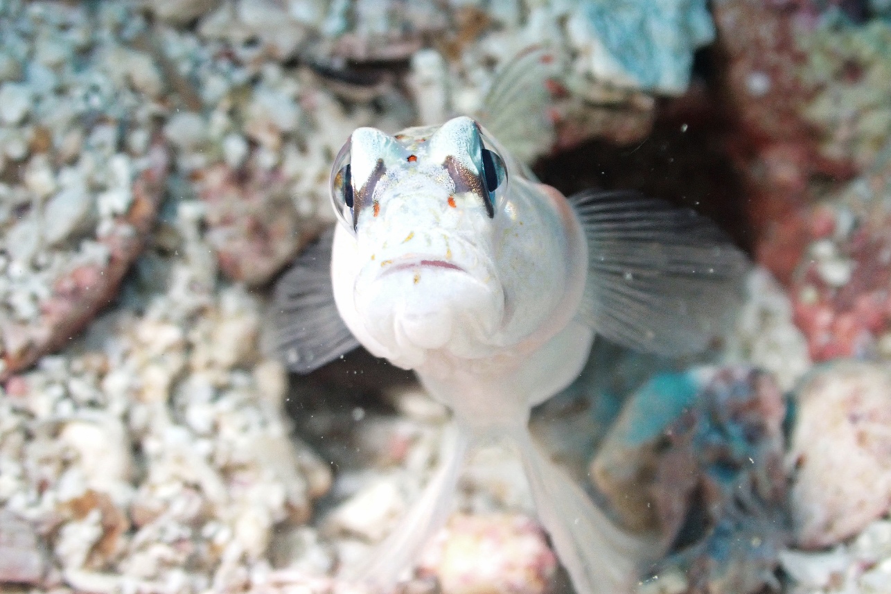 こちらもハゼ天国。砂地はハゼだらけなんですがたまたま近づいたレッドマージンシュリンプゴビーさん。近くまで寄れたので顕微鏡モードで撮ってみましたww