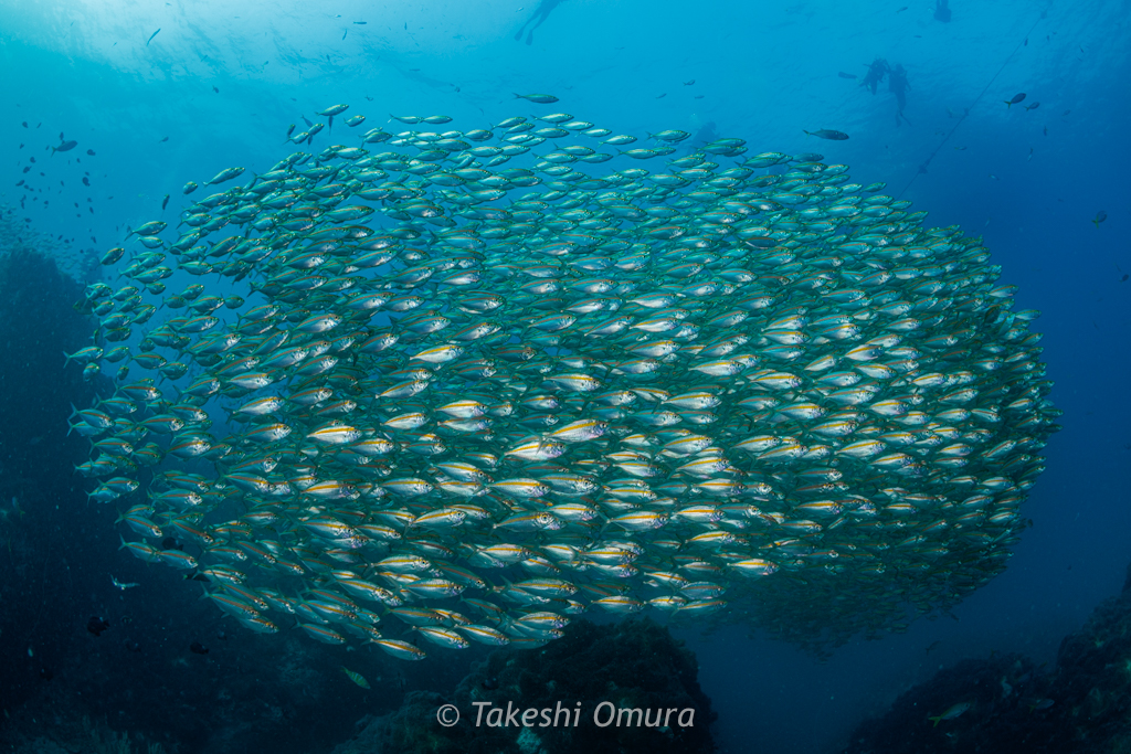 そこにジャワラビットフィッシュの群れが被さりました〜