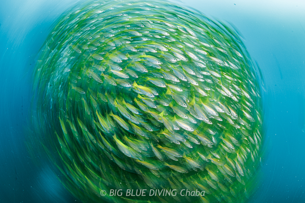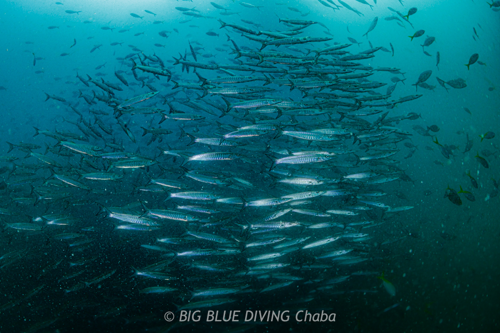 潜り初めたら、ボートの直ぐ下にシェブロンバラクーダの群れが!