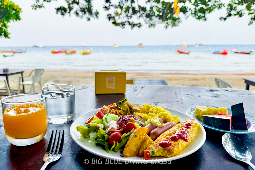 今日は、ゲストの気持ちを体験しようということで、ゲストも多く利用するSairee Hut Resortの朝食ビュッフェを体験してみました。