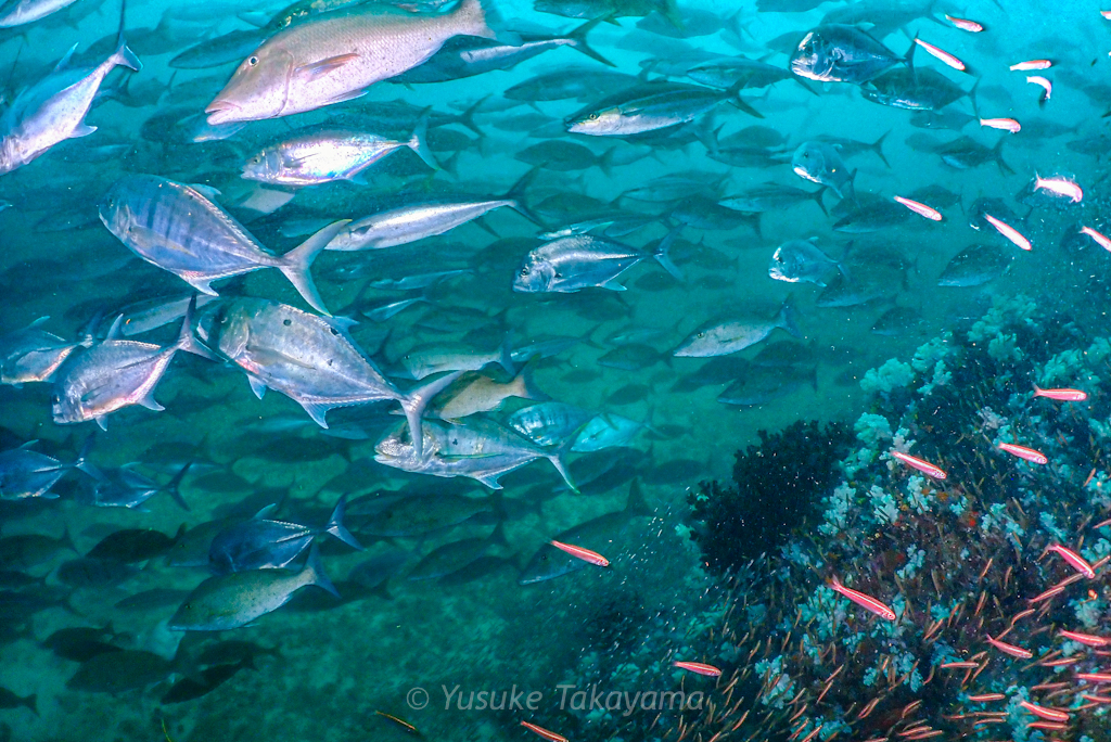 残念ながら透明度はイマイチでしたが、相変わらず、というか、ますます魚影が濃くなっていました・・・