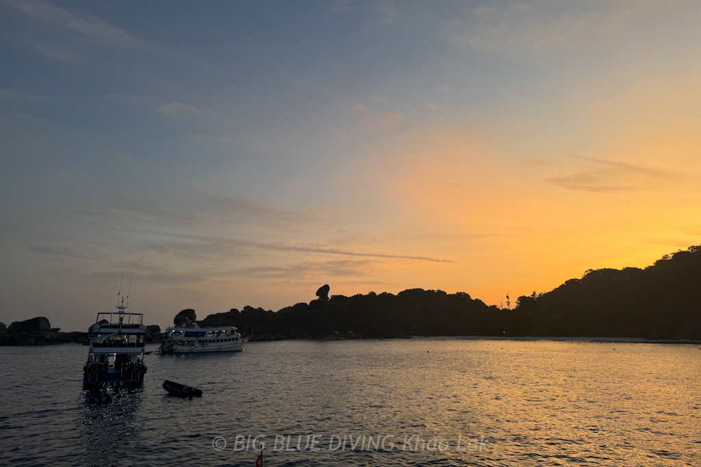 今日も4ダイブ、大満足で美しいアンダマン海に沈む夕日を見ながらサンセットクルージングです。
