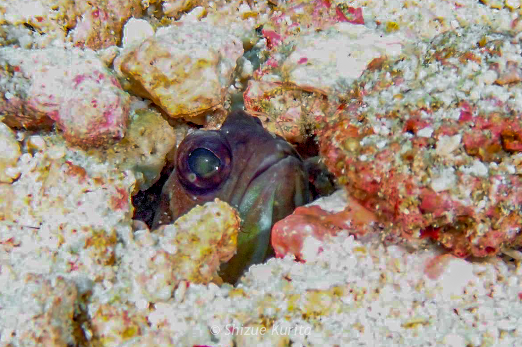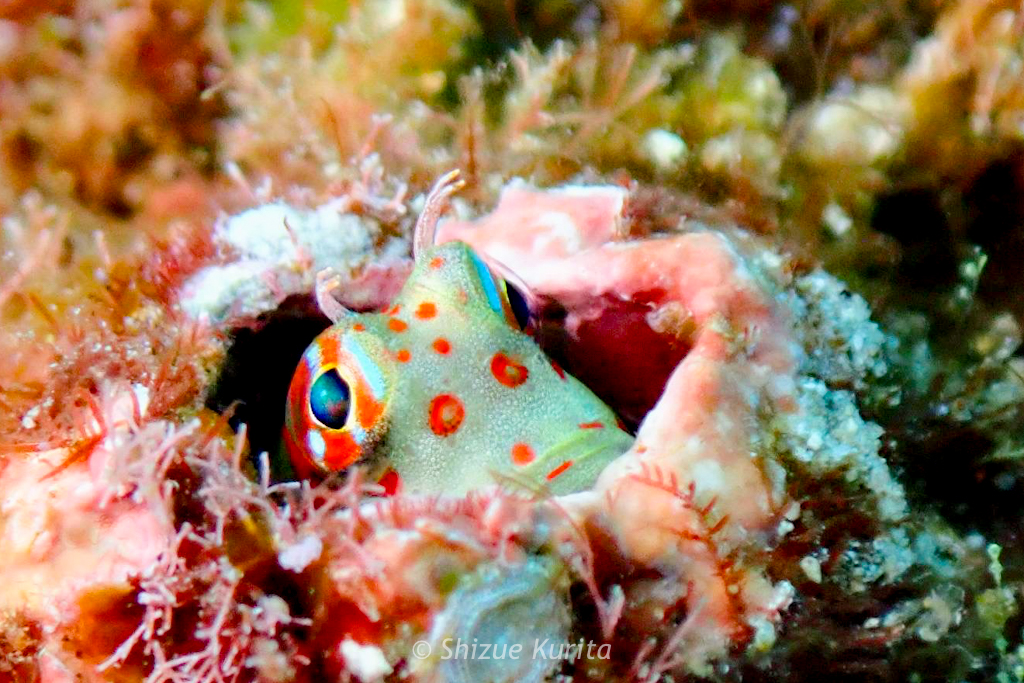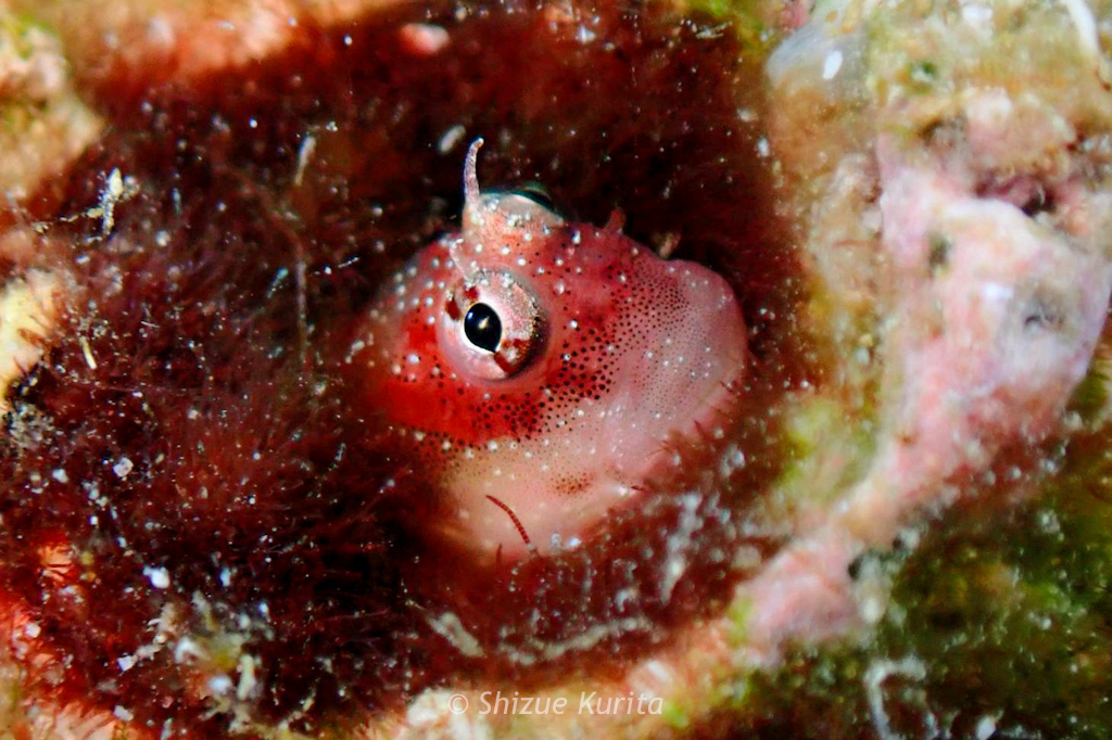 潜降して直ぐモンツキカエルウオのちびっ子と目が合いました〜