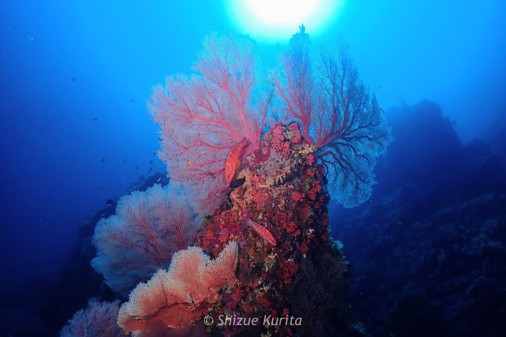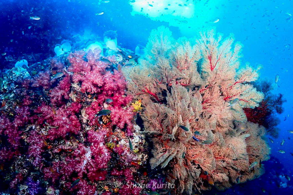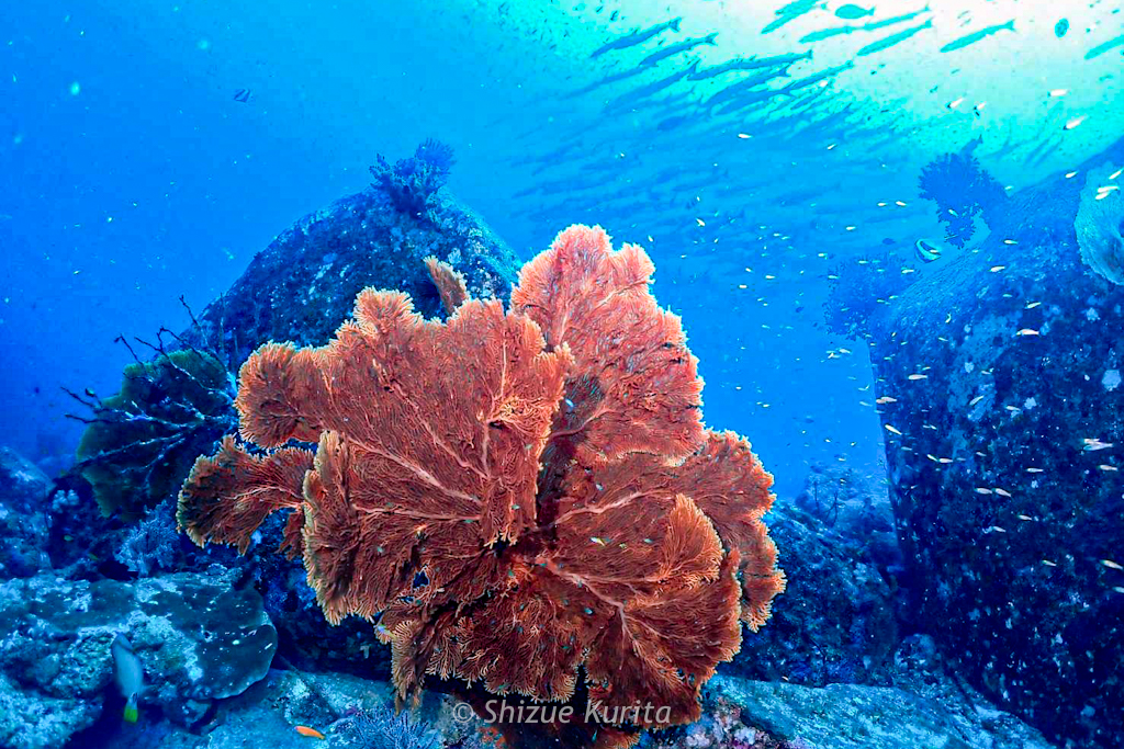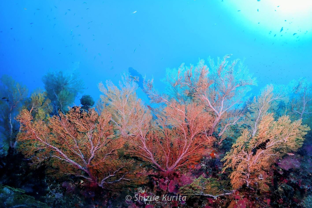 別名はウミウチワの街というソフトコーラルが華やかなポイントです。