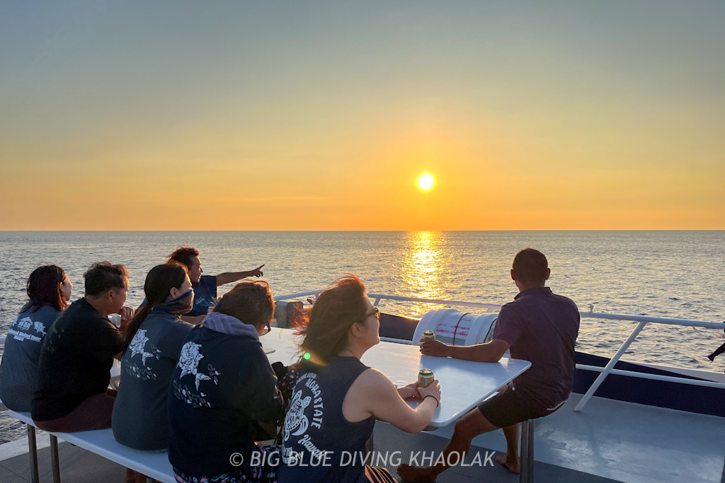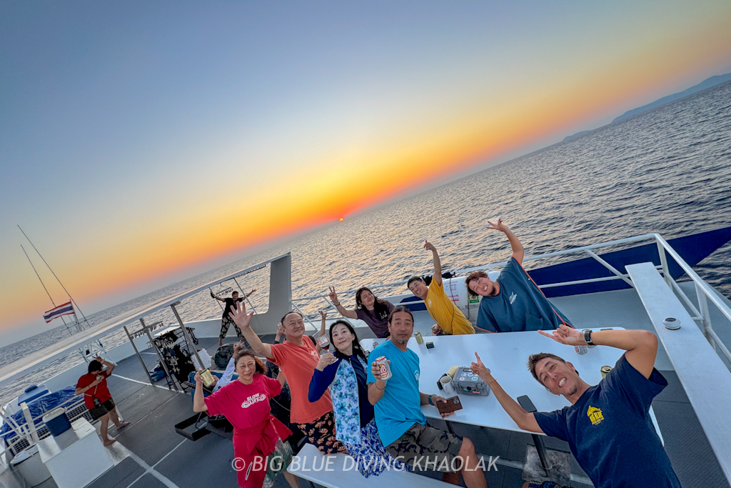 今日も楽しく安全に4ダイブして、スリン島へ向けてサンセットクルージングです。