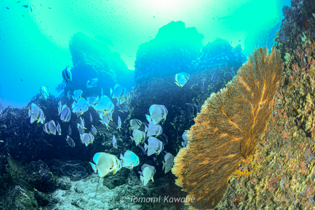 その奥にはナンヨウツバメウオの群れも!