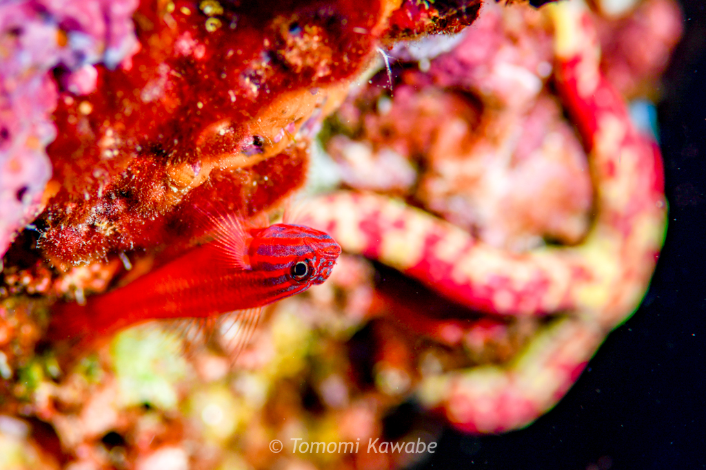 サンゴの隙間には可愛いローランドダムゼルの幼魚が、砂地にはヤノダテハゼのインド洋型のオーロラパートナーゴビーがいて、マクロ好きにも楽しめます。