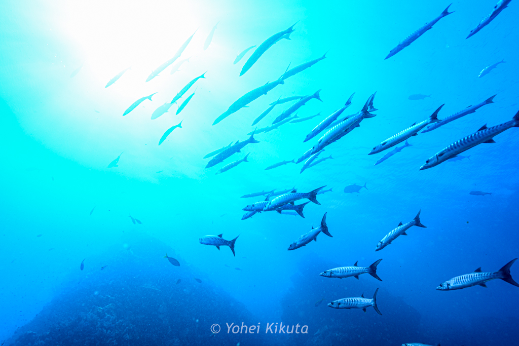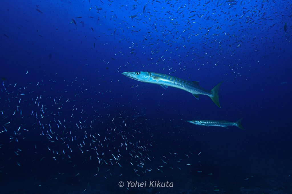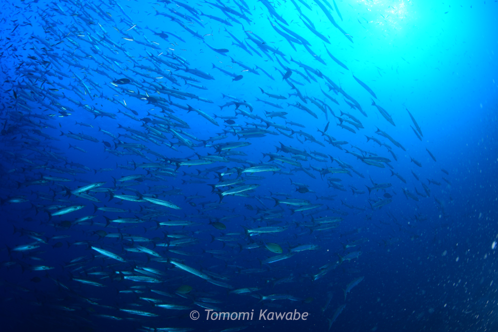 さらに潮の上へ進むと、かなり大きなブラックフィンバラクーダの群れに遭遇!