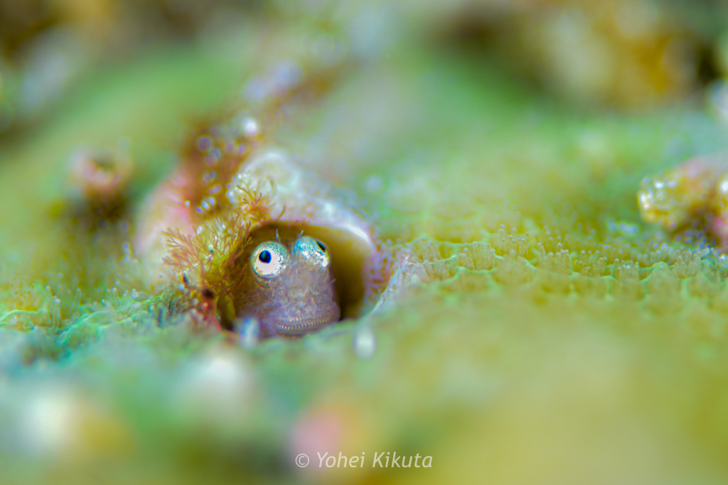 マクロネタでは、シシマイギンポ。