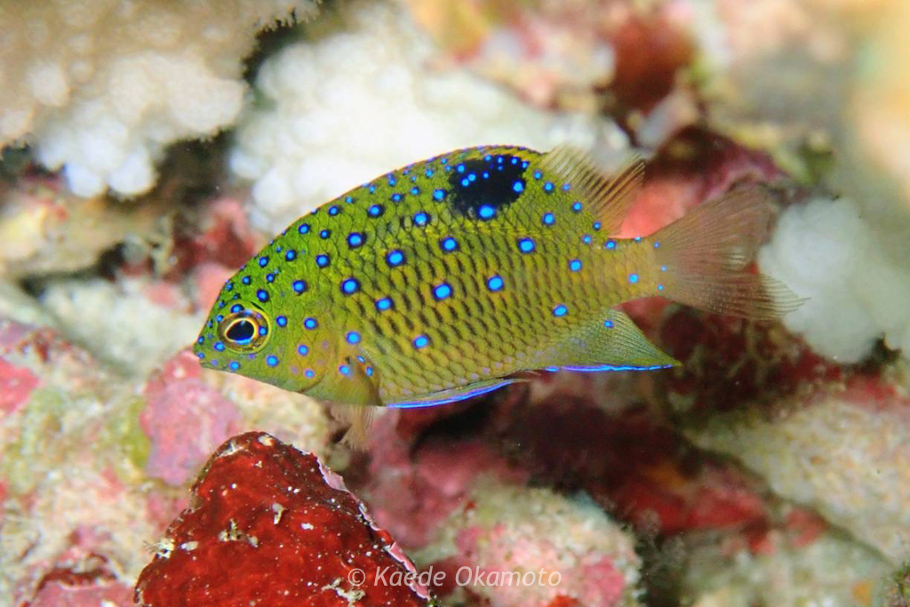ルリホシスズメダイの幼魚がいっぱいいました。