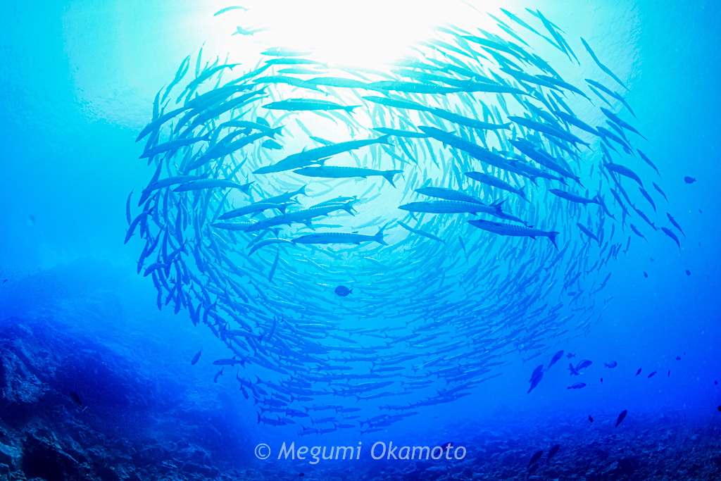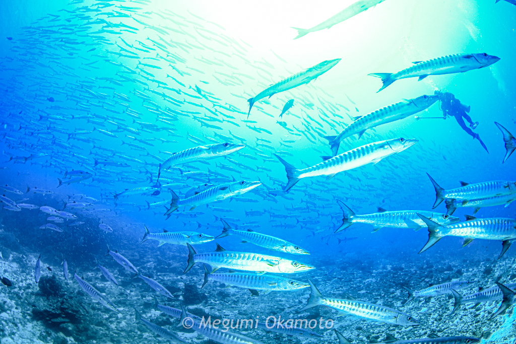 ここでは巨大なブラックフィンバラクーダの群れに遭遇!