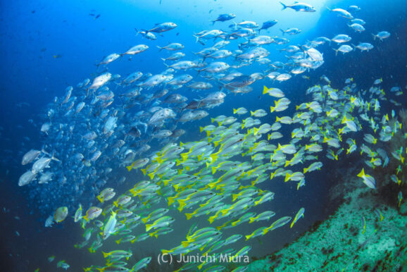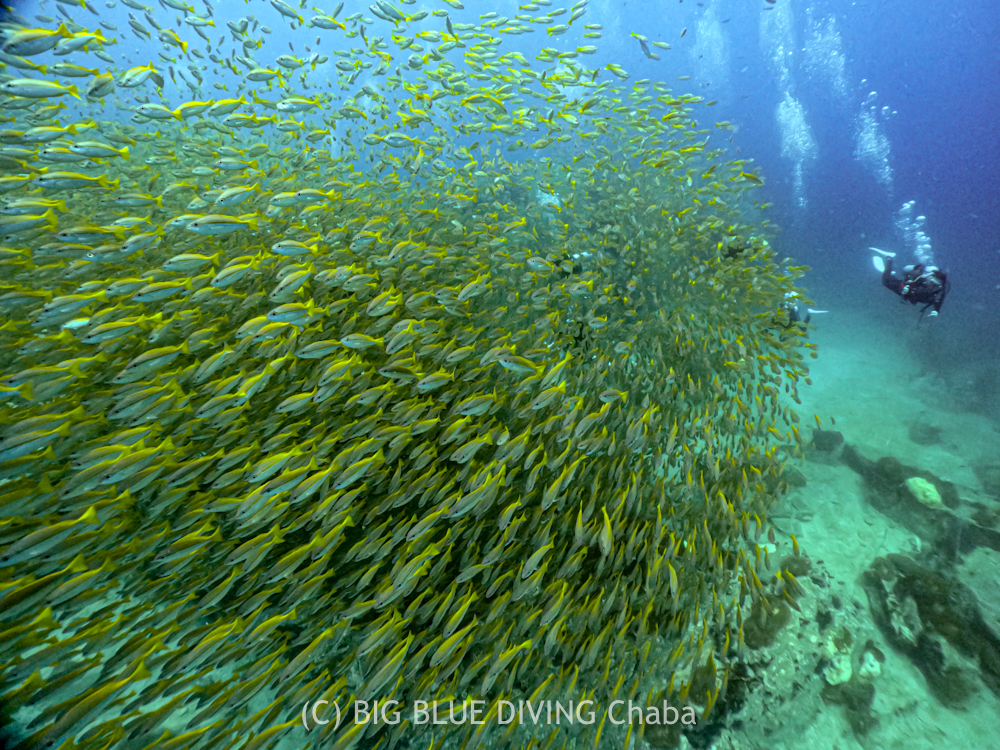キンセンフエダイの群れに突っ込んで、巻かれて遊びました!