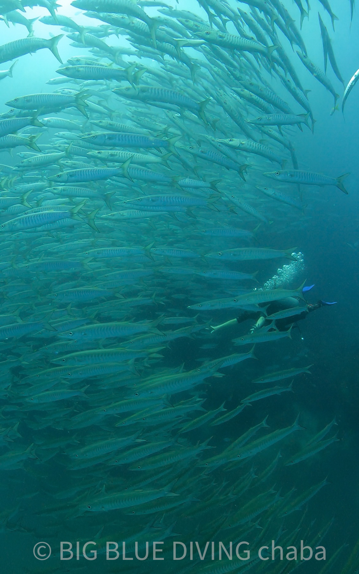 最後のダイビングではもの凄いシェベロンバラクーダの群れに遭遇しました
